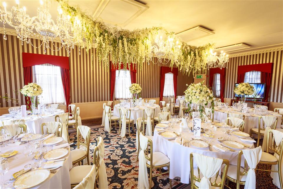 The proportion of the wedding was huge and it took the team 3 whole days to create the table flowers and the hanging flower chandiliers across the two rooms.